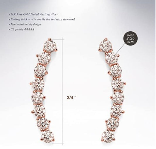 14K Gold Plated"Hearts & Arrows" Simulated Diamond Ear Crawler - Cuff Earrings Hypoallergenic Stud Ear Climber Jackets