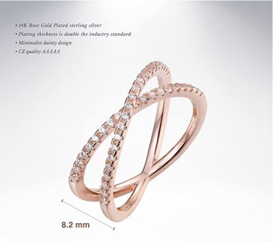 14K Gold Plated X Ring Simulated Diamond CZ Criss Cross Ring for Women