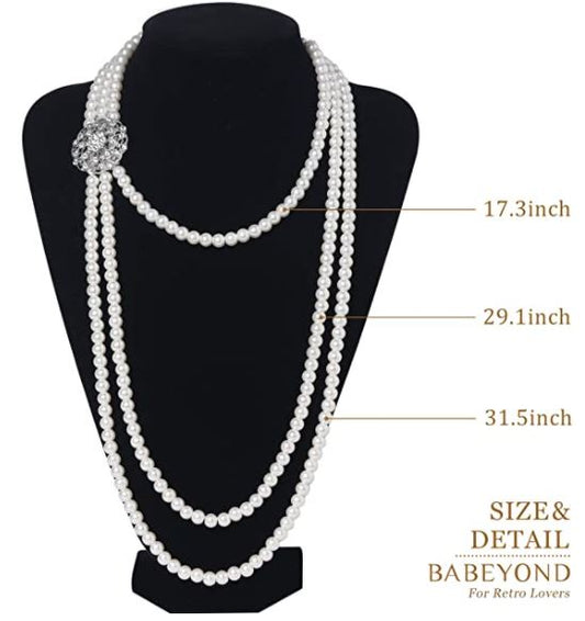 1920s Gatsby Pearl Necklace Vintage Bridal Pearl Necklace Earrings Jewelry Set Multilayer Imitation Pearl Necklace with Brooch