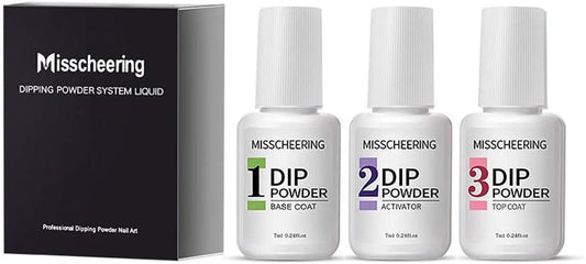 Adaskala 3-in-1 Dip Powder Nail Liquid Set Glue Kit Including Base Coat, Top Coat, Activator Nail Tools