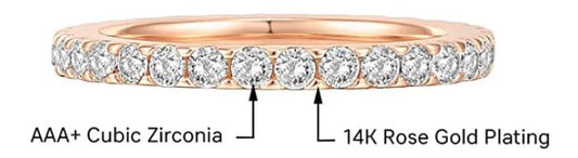 14K Gold Plated Sterling Silver Cubic Zirconia Diamond Stackable Eternity Bands for Women